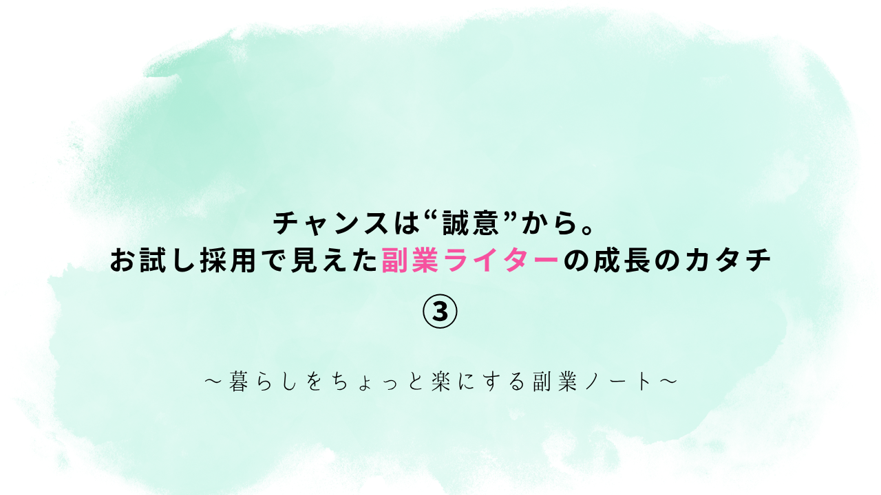 この経験を通して学んだのは、「上手に書くことより、誠実に向き合うことが大切」ということ。副業は、スキルよりも信頼が先に築かれる世界。真面目に、丁寧に続けることで、次のチャンスが必ず巡ってくる──そう感じた出来事でした。